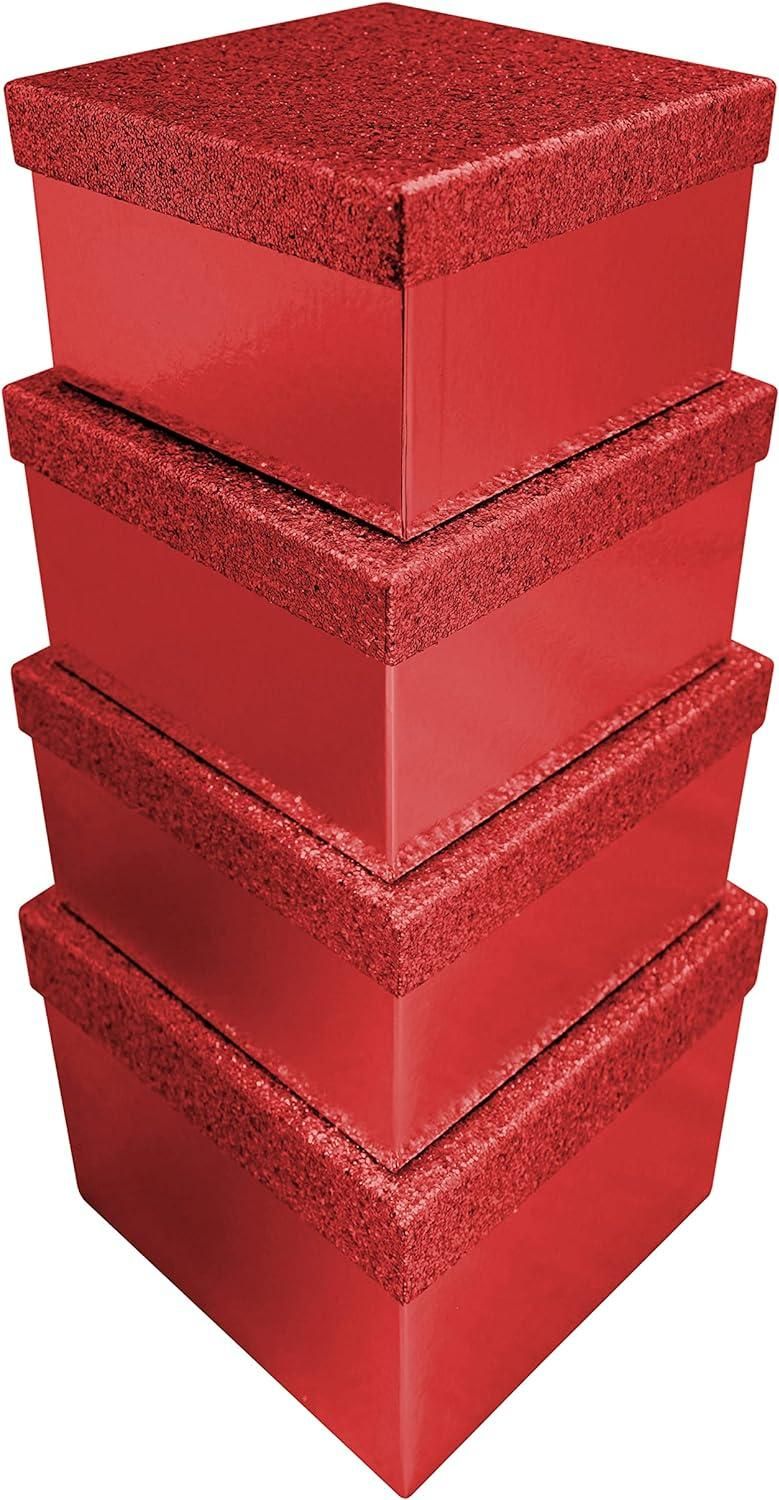 RED GLITTER SQUARE BOX Clairefontaine 22x22x13.2cm - Red