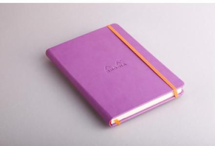 - Italian leatherette glued spine with embossed Rhodia logo- 96 non-micro-perforated sheets- 90 g brushed ivory vellum Clairefontaine paper- 1 ribbon bookmark- expanding inner pocket- secured by elastic- flat opening at 180°Size: 14.8x21cmPaper density: 90gsmPaper size: A596 sheets