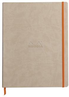 - Italian leatherette glued spine with embossed Rhodia logo- 80 non-micro-perforated sheets- 90 g brushed ivory vellum Clairefontaine paper- 1 ribbon bookmark- expanding inner pocket- secured by elastic- flat opening at 180°Size: 22.5x29.7cmPaper density: 90gsm80 sheets