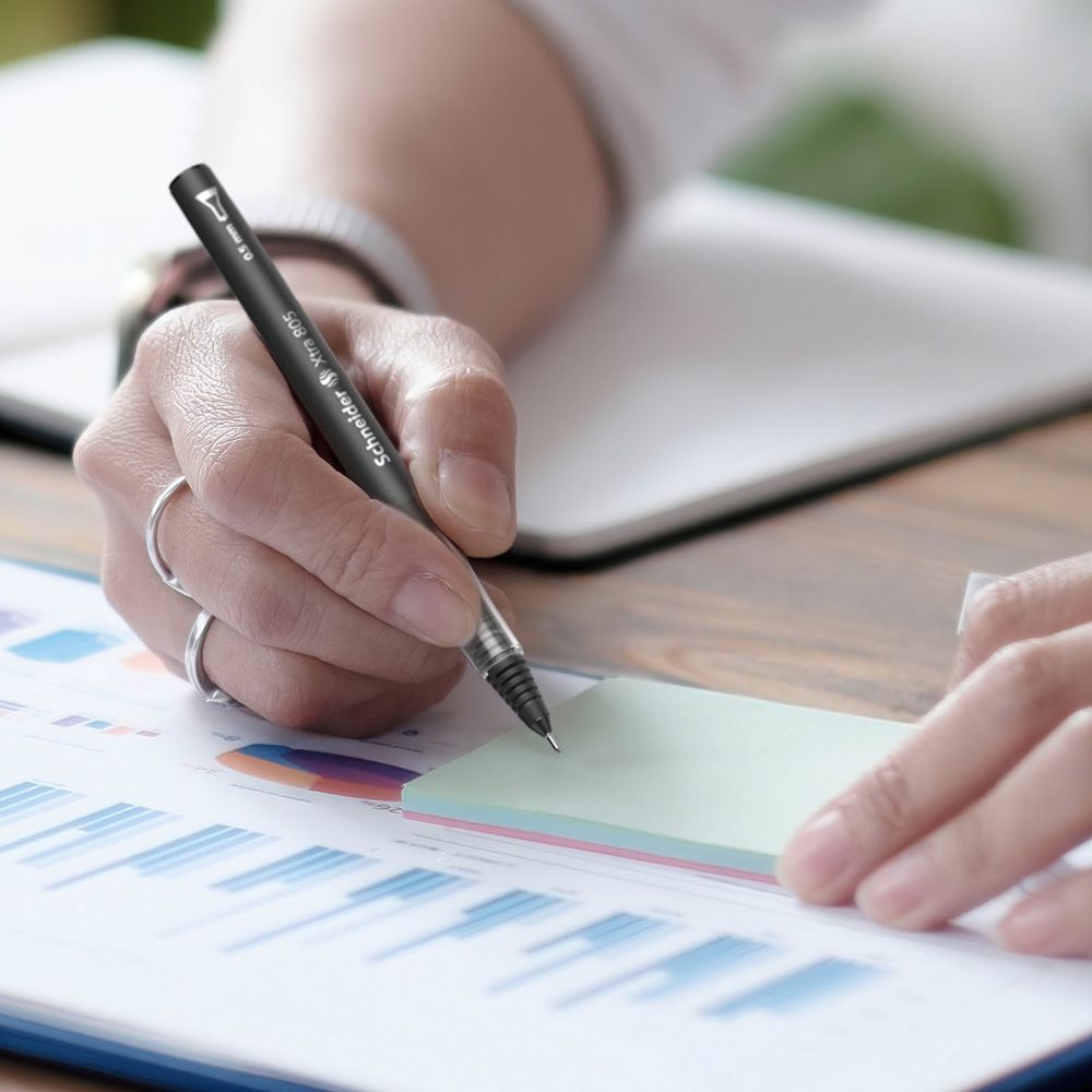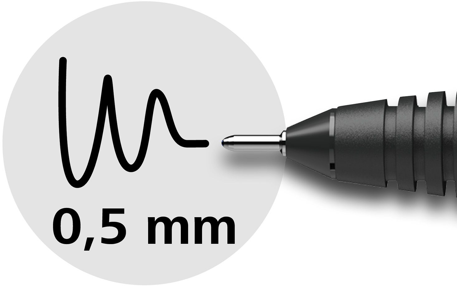 Ink roller with liquid ink technology and tube tip for distinctive writing. Ink roller with tube tip made of stainless steel and innovative liquid ink technology for comfortable and distinctive writing. The Xtra ink regulator controls the flow of ink precisely and evenly from start to finish, without ink spots or gaps. Large ink reservoir with fill-level display. Line width 0.5 mm.