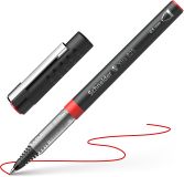Rollerball with innovative Liquid-Ink technology and wear-resistant stainless steel tube tip, line width approx. 0.5 mm. An ink regulator controls the ink flow exactly and consistently from beginning to end, without blots or skips. The large ink reservoir has a level indicator and every drop of ink is used. The cap-off ink does not run dry even if the cap is removed for 2-3 days. The cap has a sturdy metal clip and fits neatly on the end of the barrel.