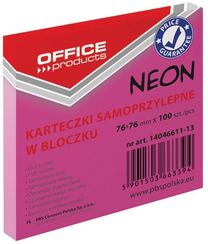 SELF-ADHESIVE PAD, OFFICE PRODUCTS, 76X76MM, 1X100 SHEETS, NEON, PINK