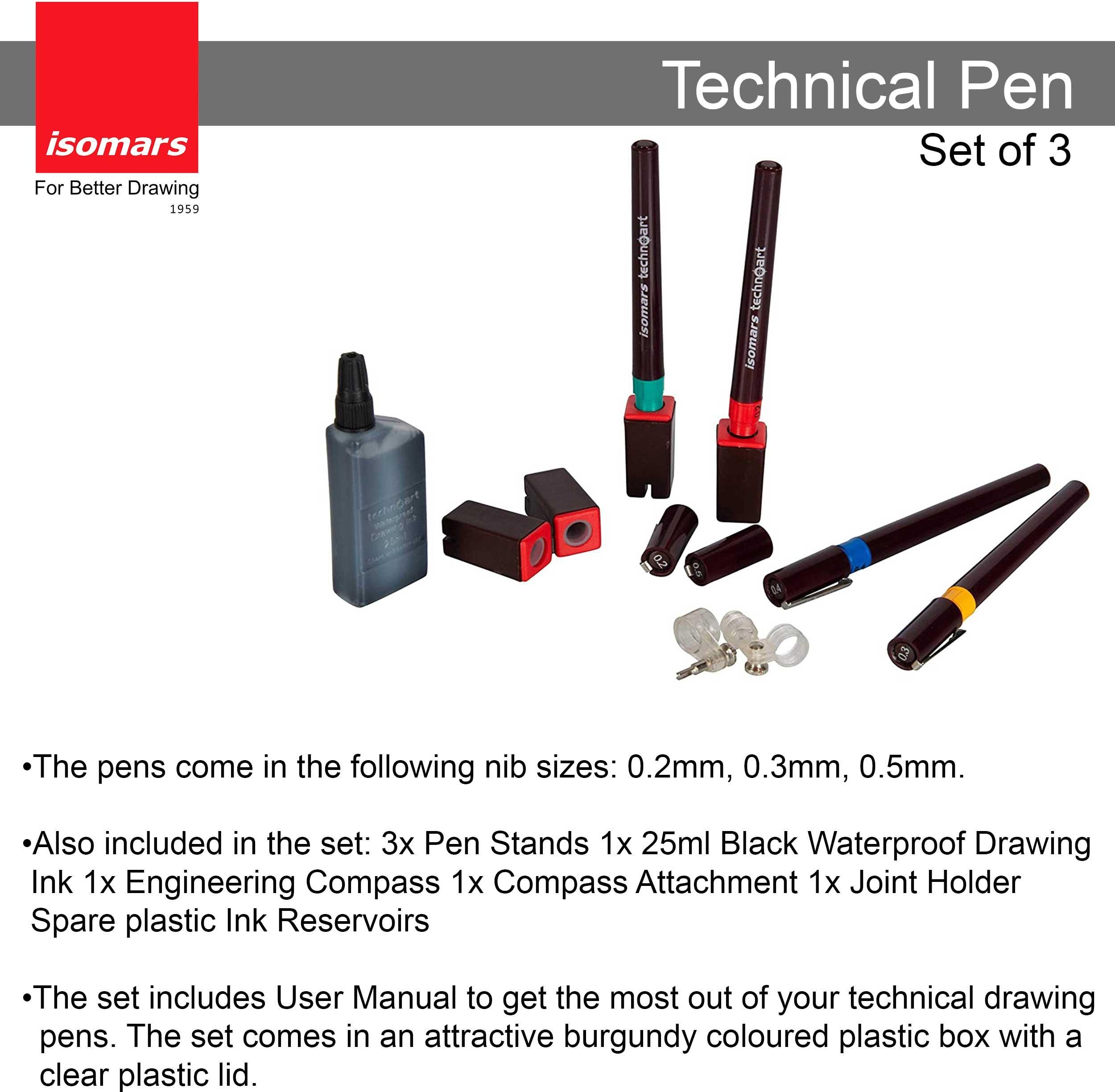 Technical Drawing Pen Set of 3 Isomars