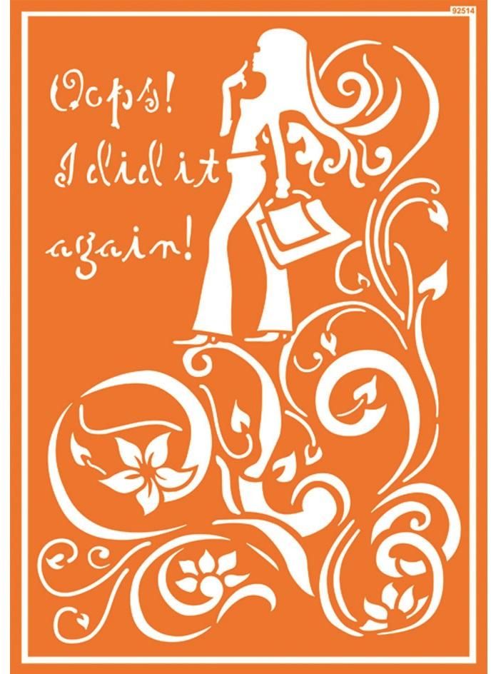 Textile stencil, self-adhesive, reusable C-Kreul Javana Textil, Shopping Girl 92514