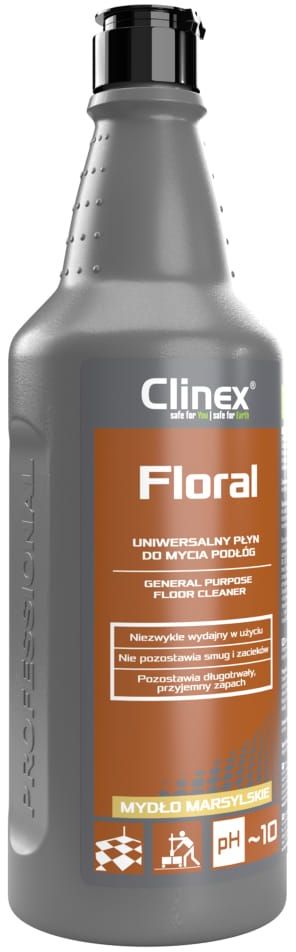 Product for professional use. Clinex Floral is intended for daily cleaning and care of all types of water-resistant floors. Especially recommended in public facilities such as offices, hotels, restaurants, shopping malls, cinemas, theaters, universities, schools, kindergartens, sports and entertainment facilities.