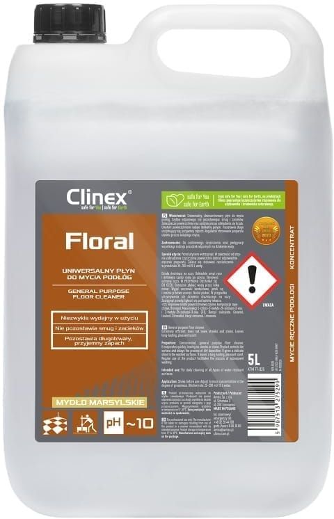 Product for professional use. Clinex Floral is intended for daily cleaning and care of all types of water-resistant floors. Especially recommended in public facilities such as offices, hotels, restaurants, shopping malls, cinemas, theaters, universities, schools, kindergartens, sports and entertainment facilities.