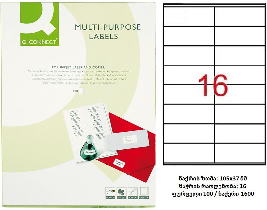 UNIVERSAL LABELS Q-CONNECT, 105X37MM, RECTANGLE, WHITE, 100 SHEETS, 16 LABELS PER SHEET