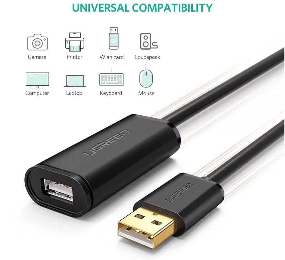 USB დამაგრძელებელი UGREEN (10321) USB Male to USB Female Active Extension Cable with Chipset 10m (Black)