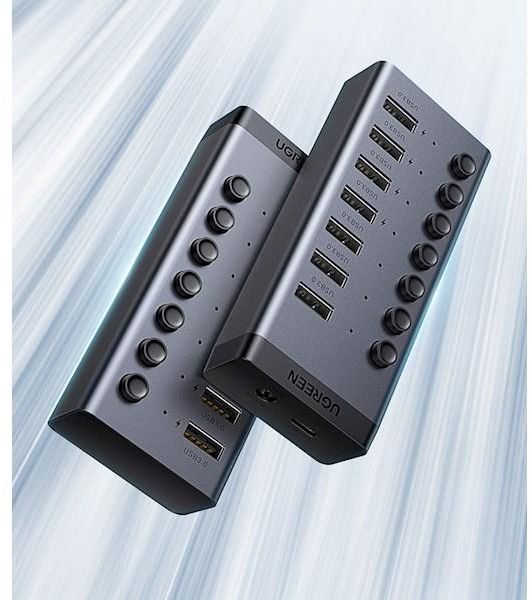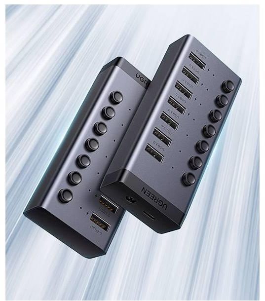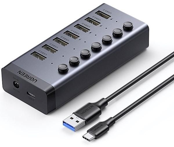 USB 3.0 hub with 7 ports, UGREEN CM481 (90307), USB-A 12V 2A, gray