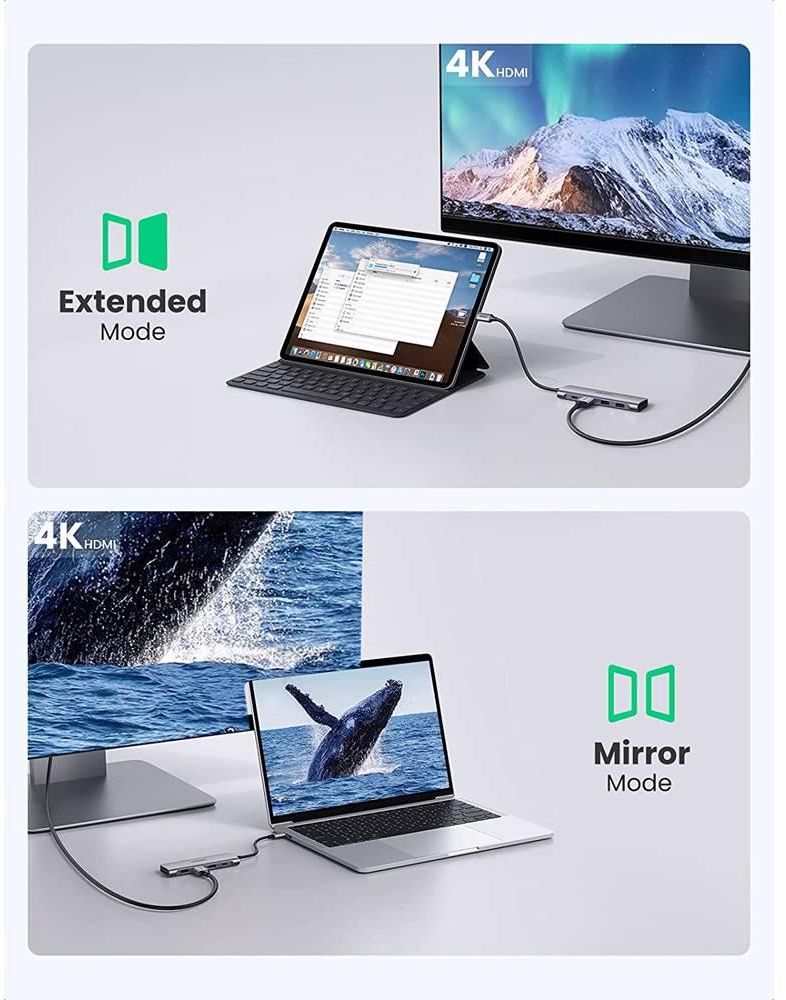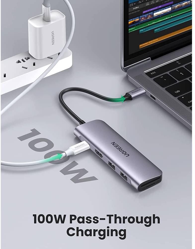 USB-C ჰაბი UGREEN CM195 (70411) Type-C , USB 3.0, HDMI, TF/SD, PD, Gray