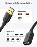 USB Extension Cable 3 m, UGREEN US129 (30127), USB 3.0 Male to USB Female, Extension Male Cable, Black.