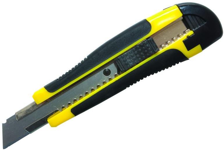 a modern, professional knife designed to cut paper, paperboard and packaging materials;snap-off 7-piece blade with the possibility of breaking off blunt parts;lock & block blade system;housing made of resistant plastic;equipped with a rubber handle for excellent grip;steel blade track guarantees the stability and security of work;has a store for two extra bladesunique design of the slider allows instant pull out from the track;system "CLIP & WORK" : move the slider up to the back of the blade, and the blade will be taken from the track;three blades includedblade width: 18 mmblade length: 100 mmcolour: yellow & black