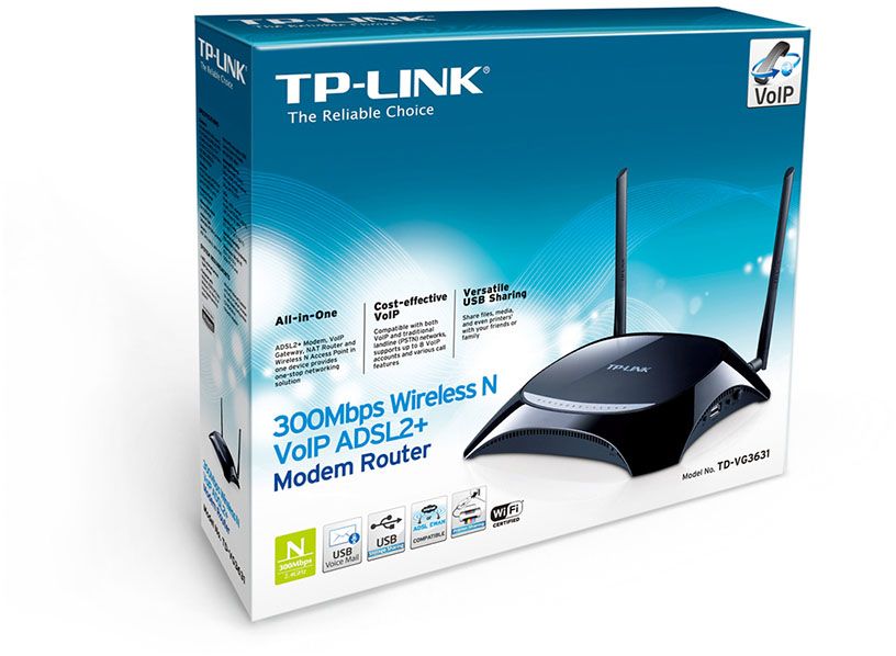 All-in-One Device: ADSL Modem, NAT Router, Wireless N Access Point and VoIP Gateway