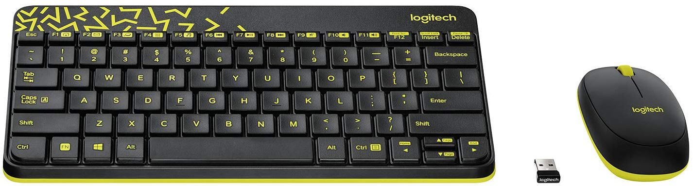 Wireless Compact Keyboard + Mouse LOGITECH MK240, BLACK/CHARTREUSE