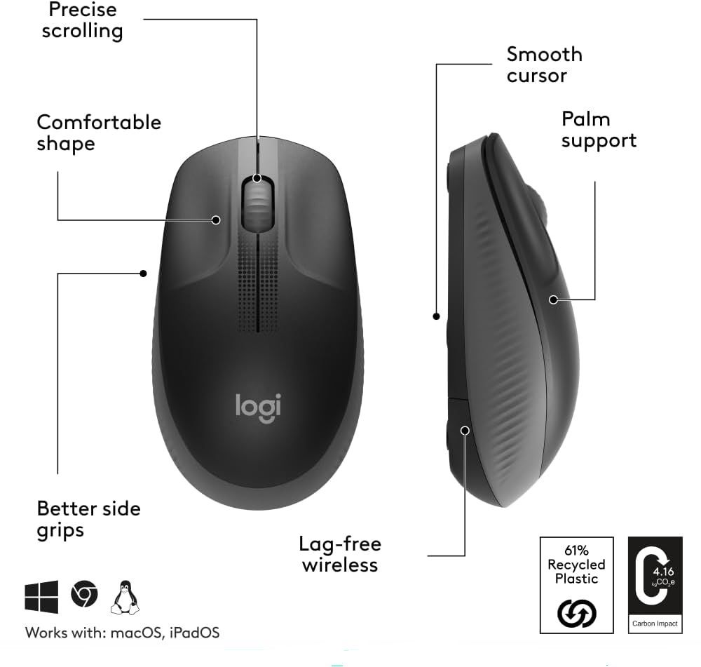 Wireless Mouse Logitech M190, CHARCOAL, DPI 1000, 115.4 mm x 66.1 mm x 40.3 mm, L910-005905
