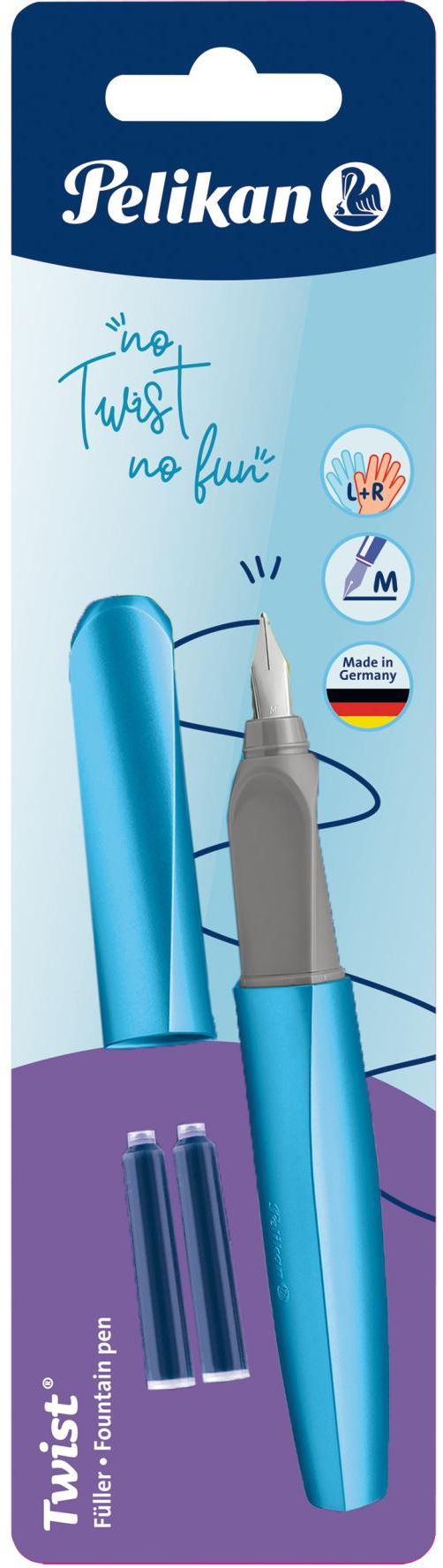 ავტოკალამი Twist, M წვერი + 1 კარტრიჯი, Frosted Blue ბლისტერში Pelikan