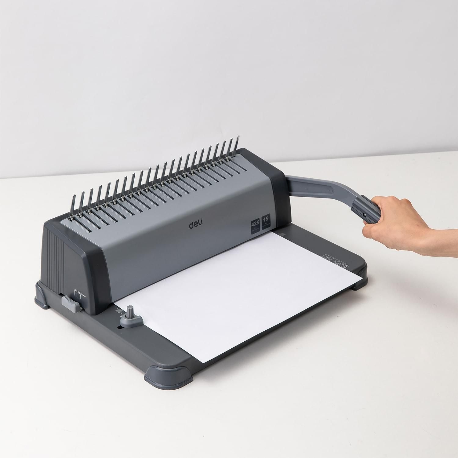 ასაკინძი მანქანა; ჭრის რაოდენობა 15 ფურცელი; აკინძვა 425 ფურცელი Deli