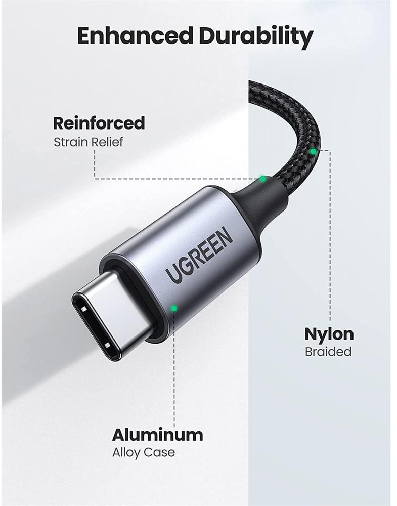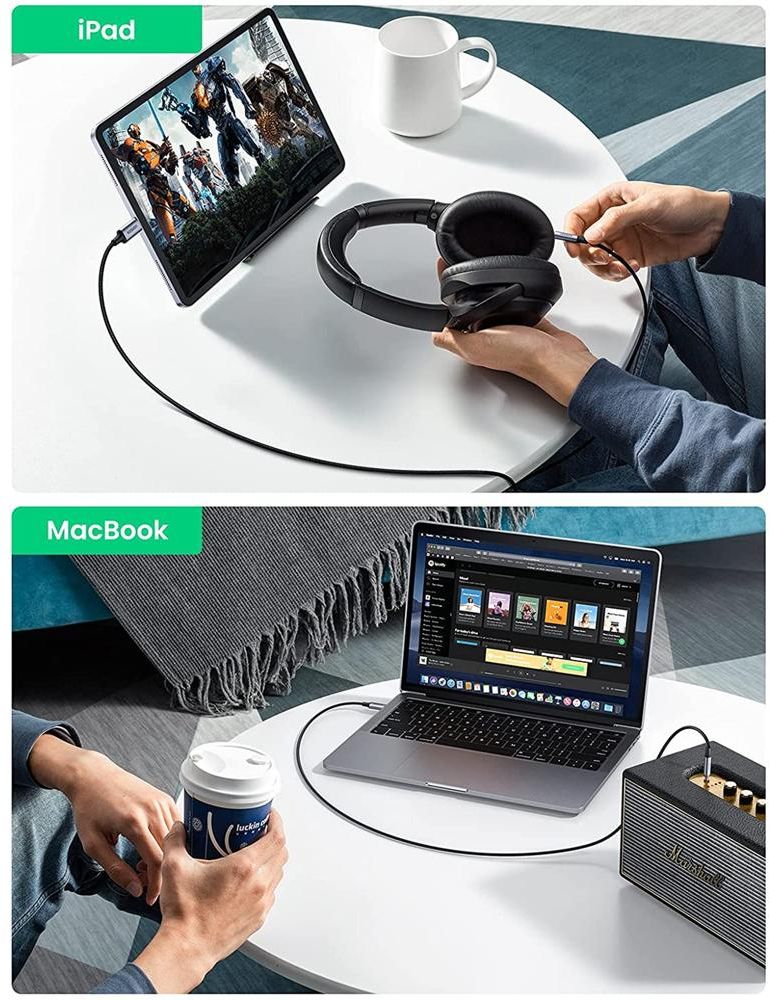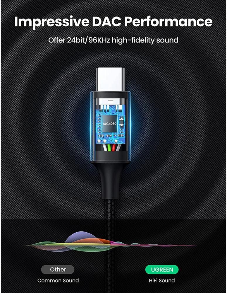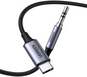 აუდიო ადაპტერი 1 მ, UGREEN CM450 (20192), Type-C Male To 3.5 მმ Male Audio Cable With Chip, შავი/ნაცრისფერი.