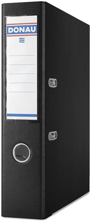 popular binder, made from cardboard with a thickness of 2.1 mm, 1290gsm;reinforced bottom edges;outer side coated in eco-friendly polypropylene film (100 µm), with a texture of canvas;white paper inner coating;high quality lever with a compressor bar;replaceable, reversible spine label;reinforced finger grip hole,control number placed under the leverage mechanism;spine width: 75mmmeasurements: 75x320x285mm2 year warranty for the mechanism;color: black