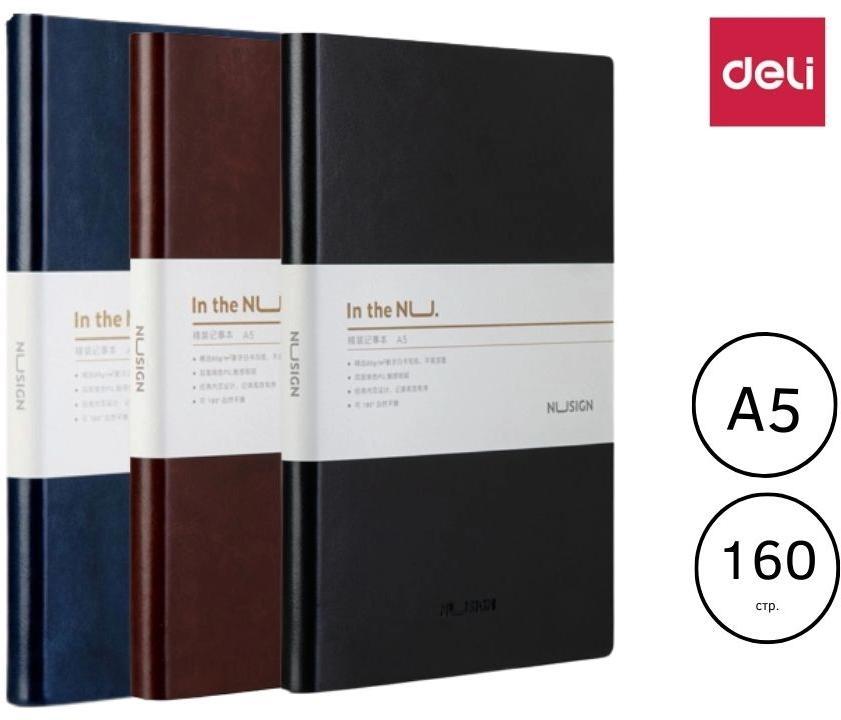 ბლოკნოტი ტყავის ელასტიური ყდით Deli 210x140მმ 80გ/მ² A5 160 ფურცელი (ფერი შეიძლება განსხვავდებოდეს)