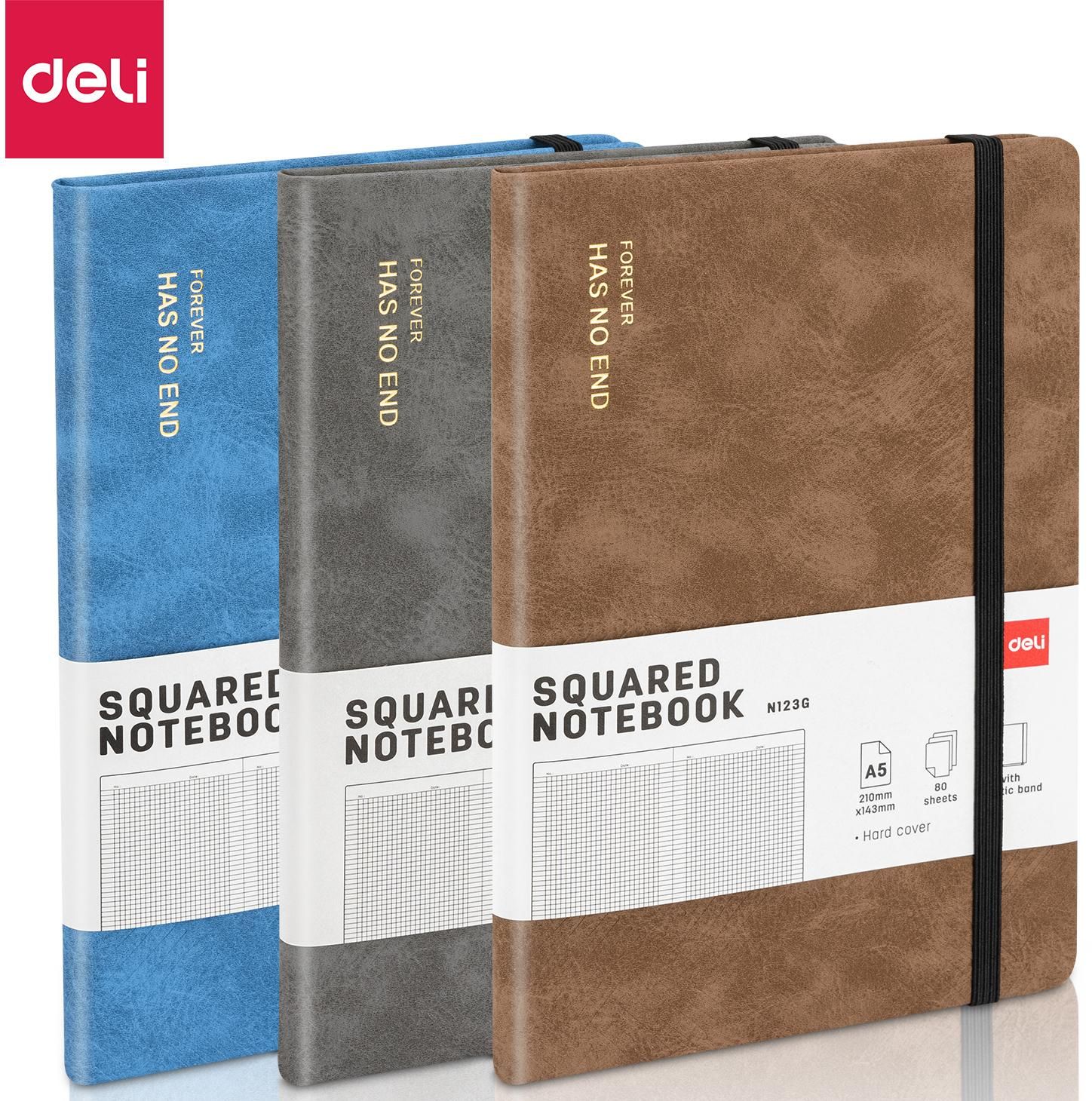 ბლოკნოტი ტყავის ყდით Deli A5 80 ფურცელი
