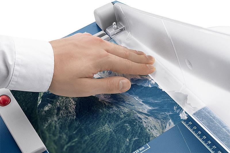 დასაჭრელი მასის მანუალური დამჭერი ჩამონტაჟებული თითების დაცვის მექანიზმით.