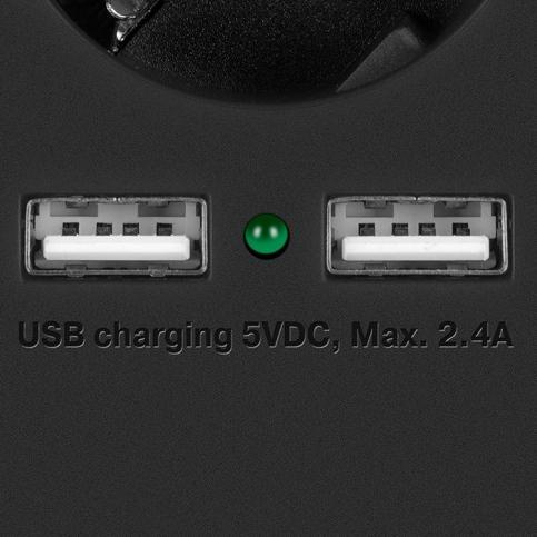 ჩამრთველების რაოდენობა:5, 2 x USB 2.4 A