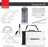 ხის ორმხრივად ლამინირებული სახაზავი დაფა15° სამუშაო კუთხითპლასტმასის ხელსაკიდისახაზავი რეიშინა15 სმ-იანი სამკუთხა ტრანსპორტირი სახაზავი4 სამაგრი პლასტმასის კლიპიტრანსპორტირი 180°30°, 45° სამკუთხა სახაზავების 2 ცალიანი კომპლექტი (25სმ, 30სმ)ფარგლის 4 ნივთიანი კომპლექტიმეტალის ფიგურებიანი სახაზავი3 სხვადასხვა ზომის ლეკალომასშტაბური 30სმ-იანი სახაზავიფანქრის გრიფელებისათლელიჩანთა საკიდით