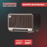 აუდიო შემავალი: Bluetooth, Wi-Fi (Apple AirPlay), USB-C, AUX