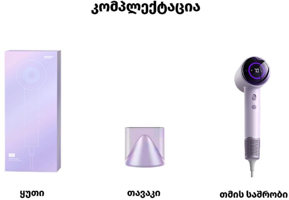 თმის საშრობი ALLX AXH-015P, 1600W,ნეგატიურ იონიანი, ტურბო ,იასამნისფერი