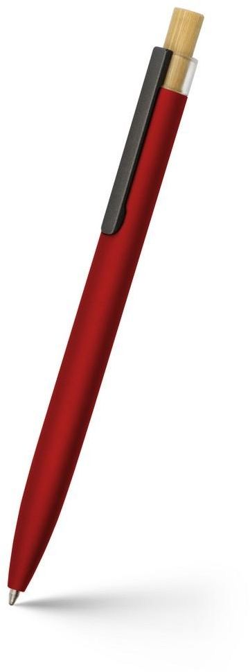 კალამი ბურთულიანი "ECOLOR" V0030 გადამუშავებული ალუმინის კორპუსით წითელი, ბამბუკის ღილაკით (ბრენდირებადი)