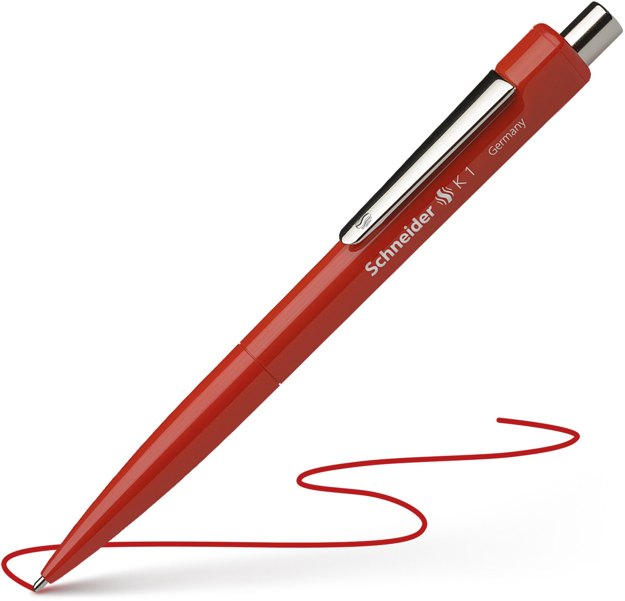 Ballpoint pen with sturdy metal clip and metal push button - an attractive design that has sold in millions.
