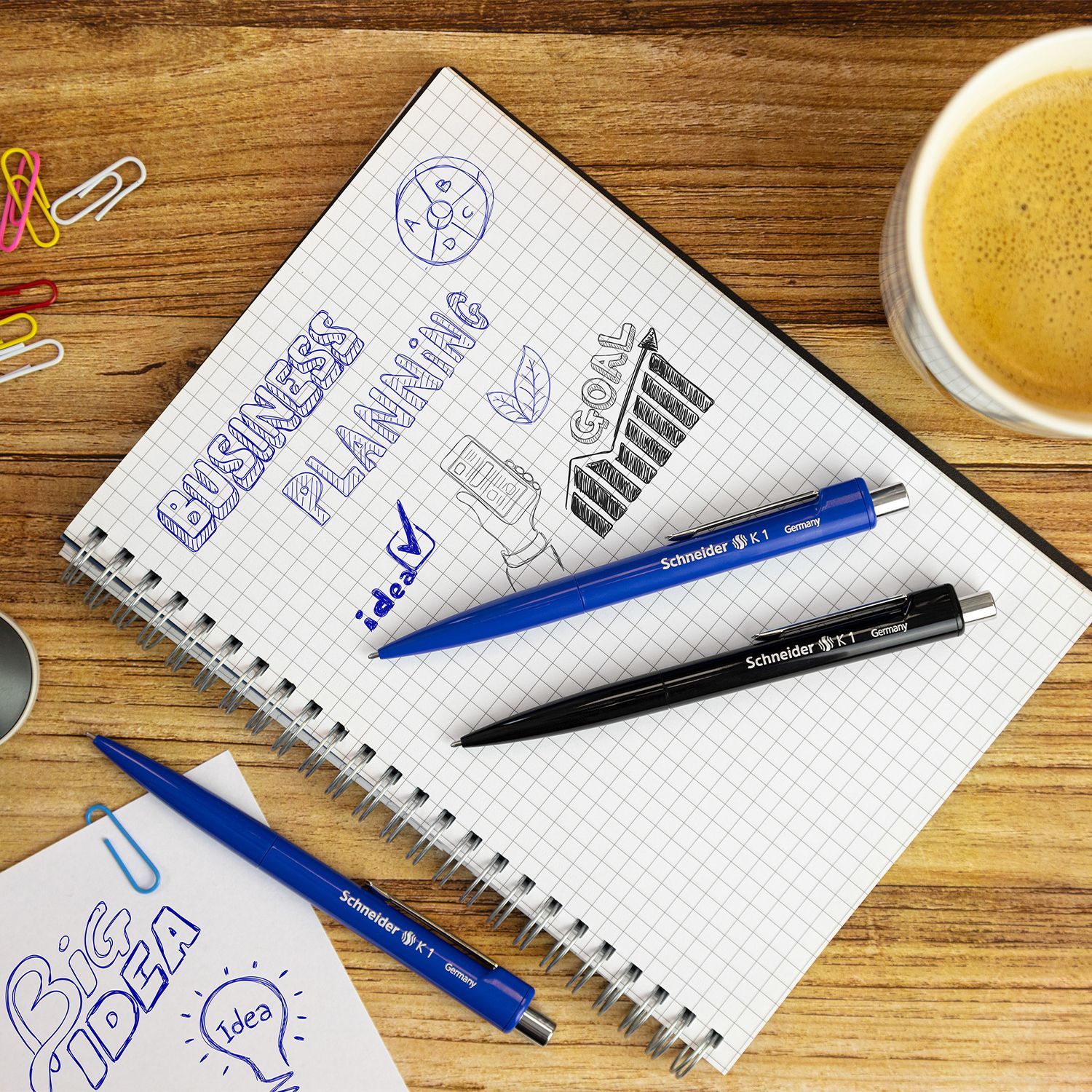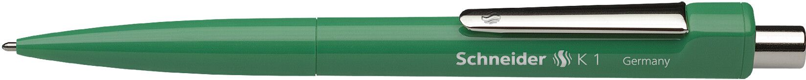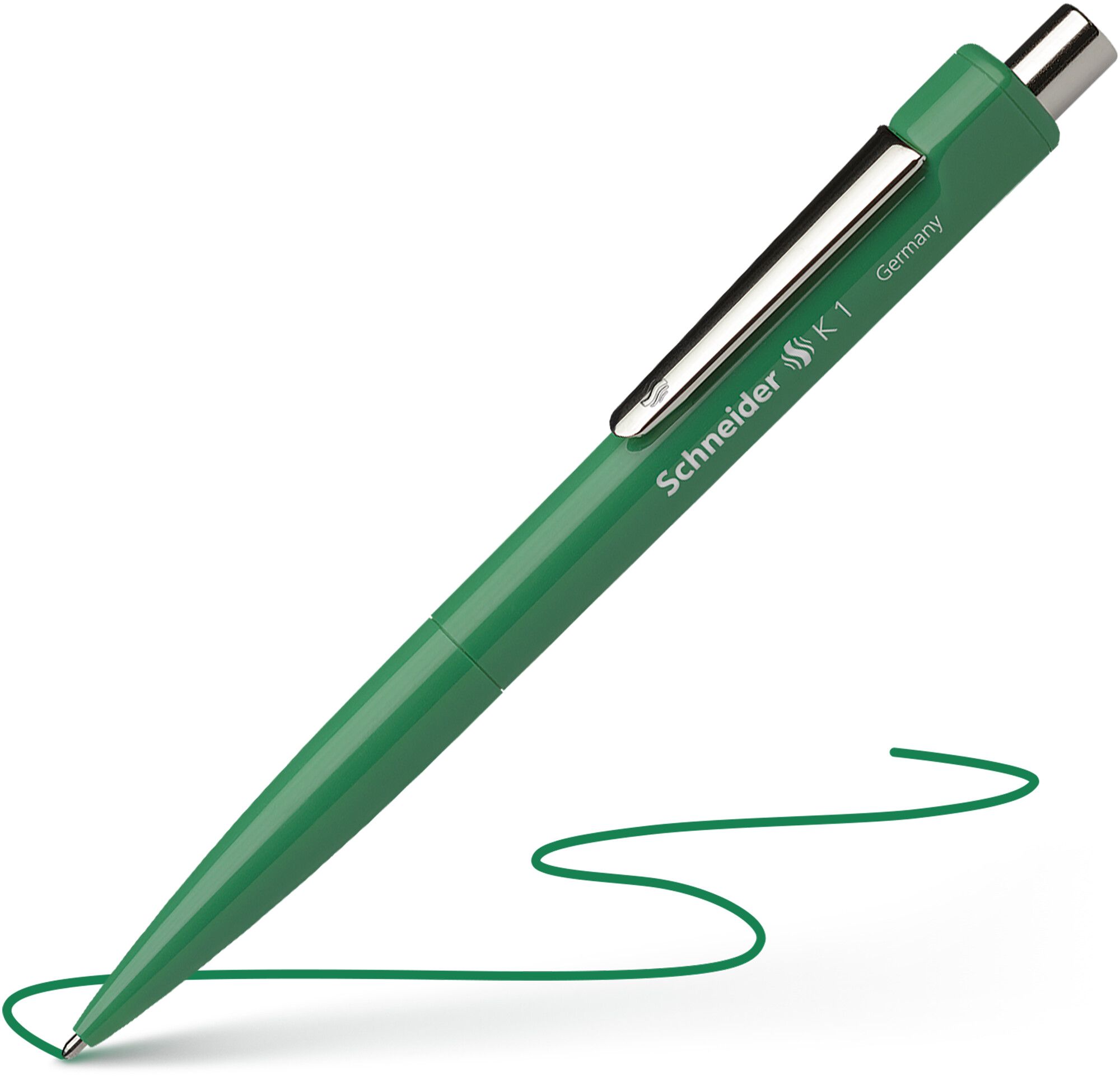 Ballpoint pen with sturdy metal clip and metal push button - an attractive design that has sold in millions. Writing colour green. With replaceable giant metal refill Medium (M), waterproof according to ink standard ISO 12757-2. The wear-resistant stainless steel tip guarantees that the large ink supply can be fully used and does not smear.