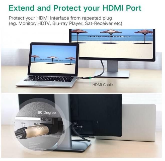 კუთხის HDMI ადაპტერი, UGREEN HD112 (20109), HDMI Male to Female Adapter Down, შავი.