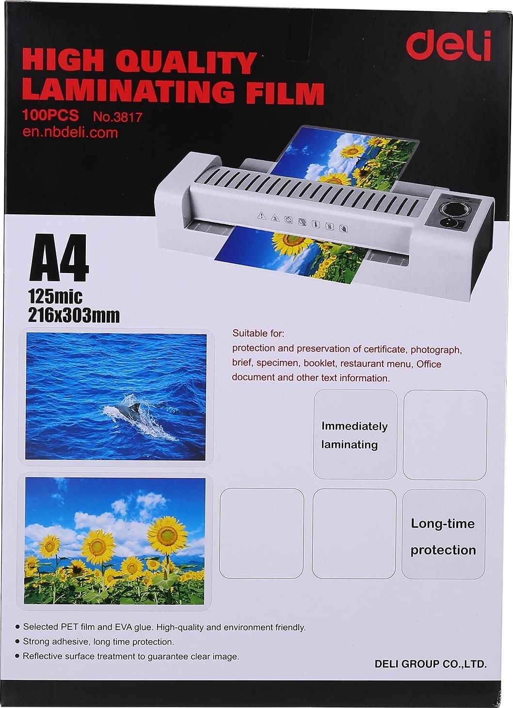 ლამინატორის ფირი A4 125მკმ 100 ცალიანი შეკვრა Deli