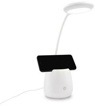 მაგიდის სანათი "ECOLOR" V0188, თეთრი, WIRELESS სპიკერით, ტელეფონის დამჭერით, სამაგიდო ორგანაიზერი