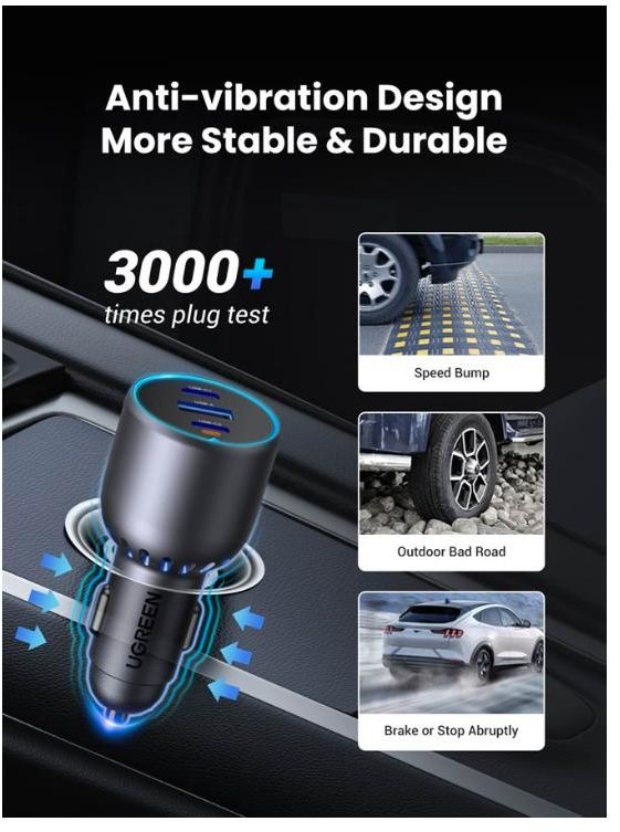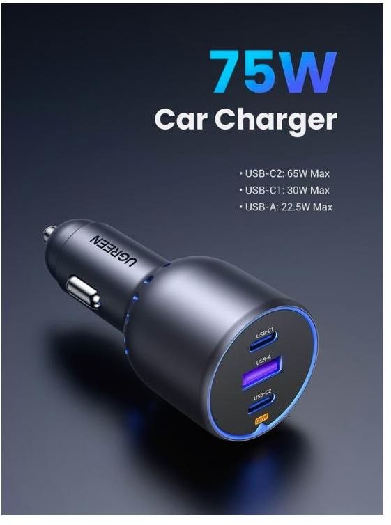 მანქანის დამტენი, UGREEN EC703 (35024), 75 ვატი, ტიპი-C, USB-A, ნაცრისფერი.