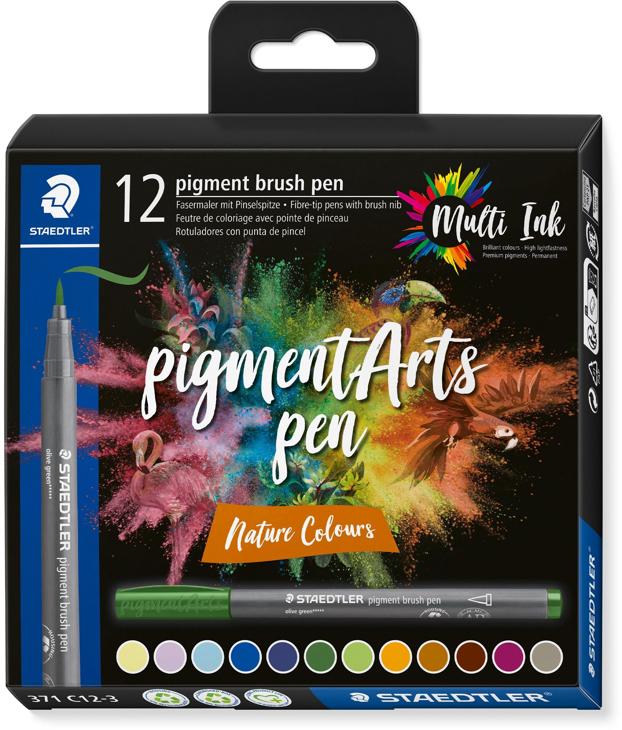 მარკერი ხატვის Staedtler Pigment Brush Pen 371 C12-3 ბუნების ფერები 12ფ