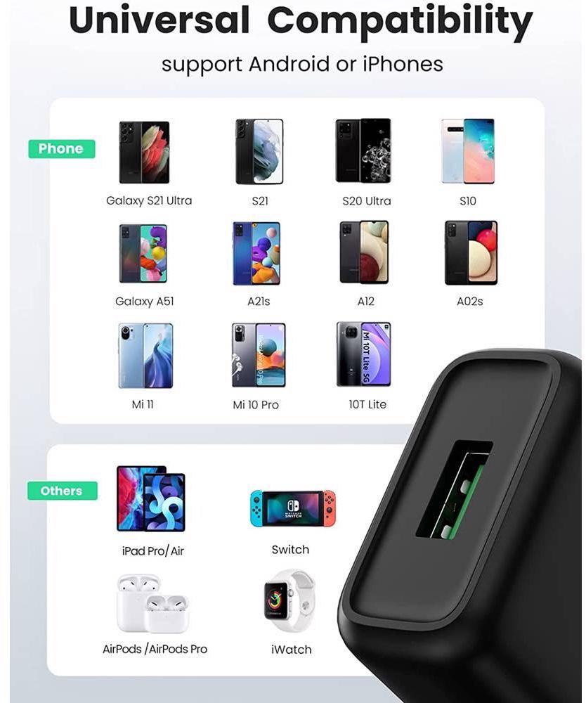მობილურის დამტენი UGREEN CD122 (70273), 18W, Quick Charge USB Charger, Black