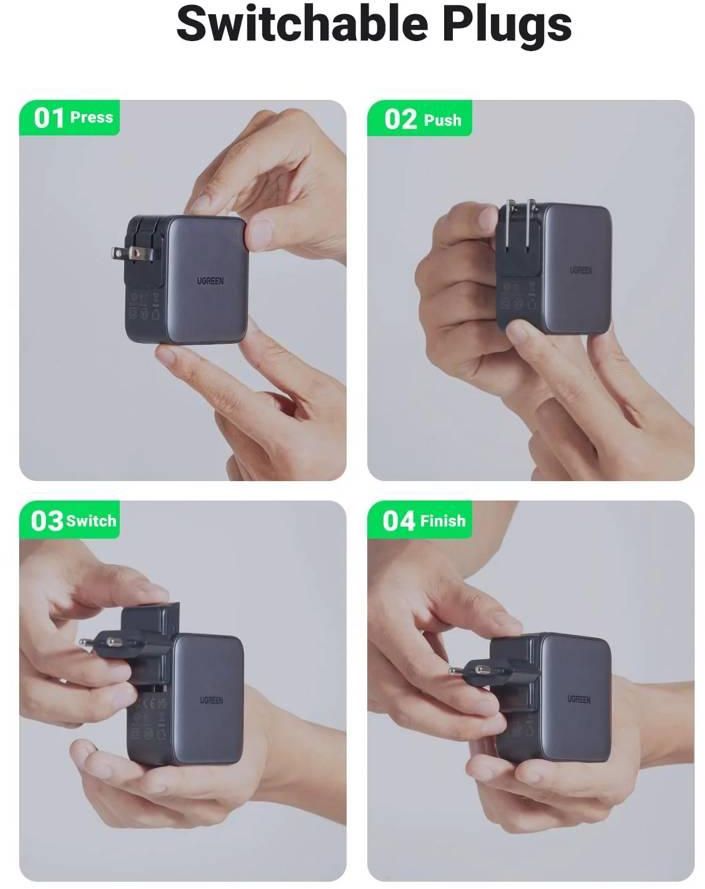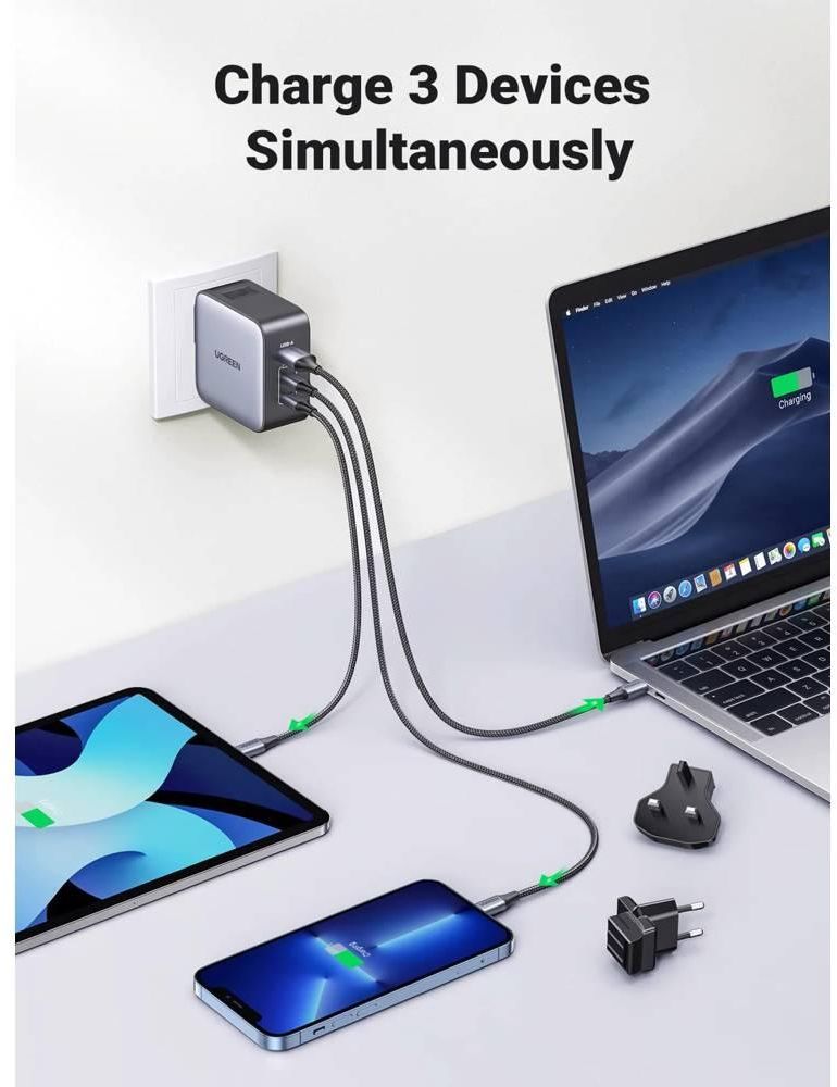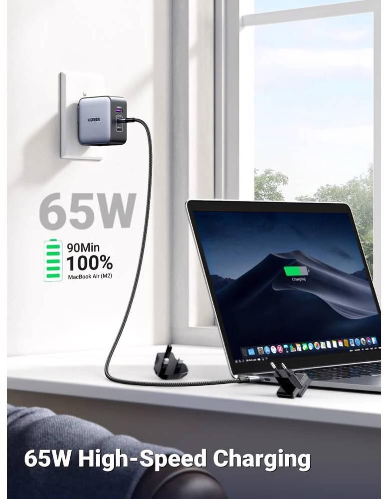 მობილურის დამტენი UGREEN CD296 (90409), Nexode, Travel Adapter, 65W, USB, Type-C, Grey