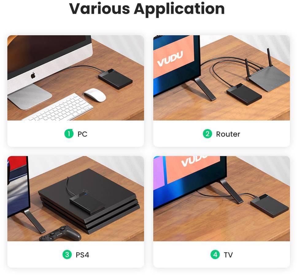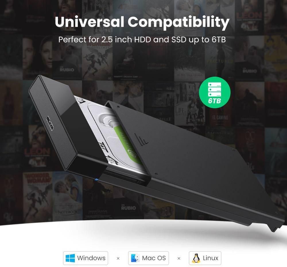 მყარი დისკის ქეისი, UGREEN 30848 USB 3.0-დან SATA-მდე გარე მყარი დისკის კორპუსის ადაპტერი, SSD/HDD ყუთი, 5Gbps, შავი.