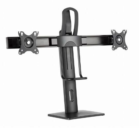 მაგიდის სადგამი ორი მონიტორისთვის სიმაღლის რეგულირებით