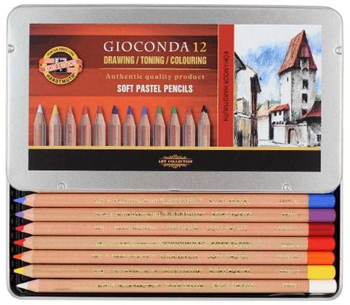 პასტელის ფანქარი, სამხატვრო, ნაკრები Koh-I-Noor 8827012005PL 12 ცალი, ლითონის კოლოფი