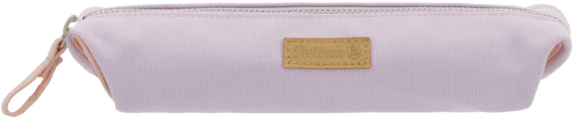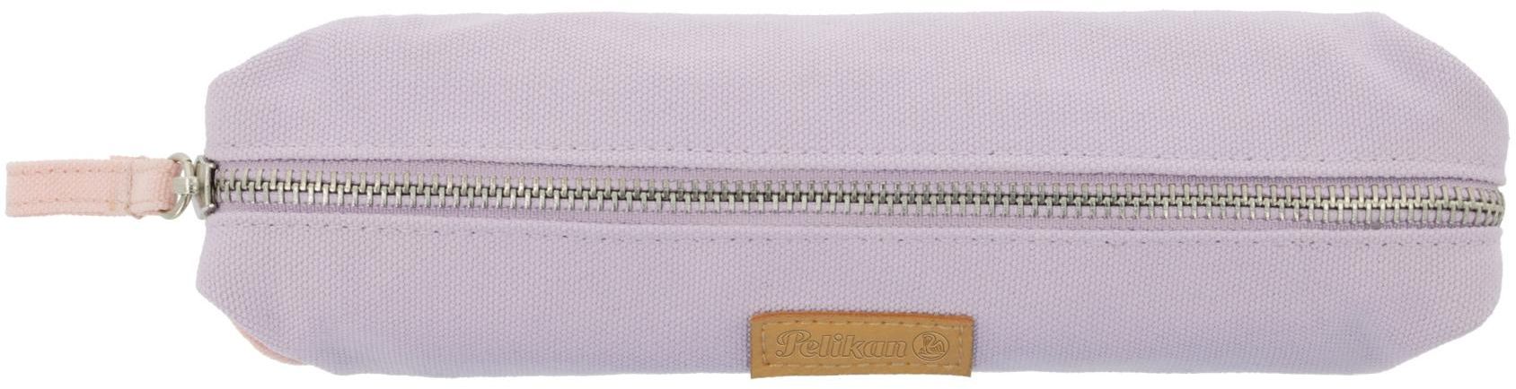 Material: Polyester RPET; 1 spacious main compartment; fancy shape, folded at the side; Zipper silver; Inner lining grey; perfect companion for school; University; work or leisure; handy; Dimensions: 24 x 8 x 6 c; easy transport; Colour: Lavender/Apricot