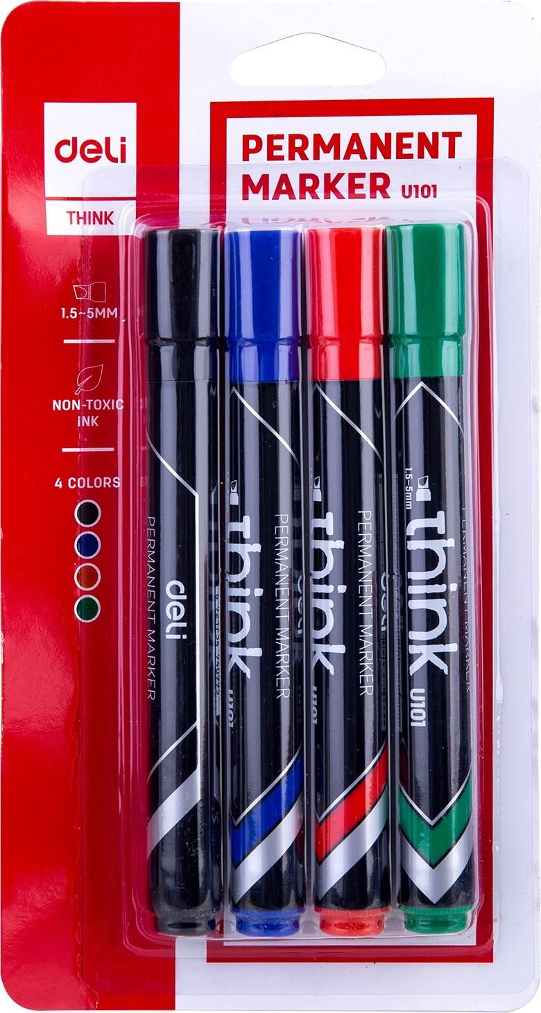 პერმანენტ მარკერის სეტი წაკვეთილი თავით Deli 4 ცალი