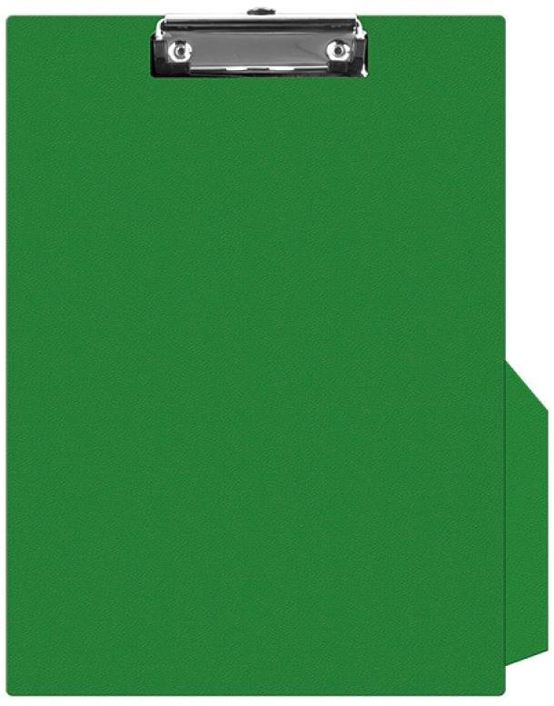 clipboard without cover;made of cardboard with a thickness of ca 2 mm;coated with high quality PVC foil;metal clamp with capacity of up to 50 sheets, 70gsm;a pencil or pen holder placed on the long side;equipped with a special loop placed in the clamp for hanging the clipboard on the wall;format: A4size: 230x350mm;colour: green