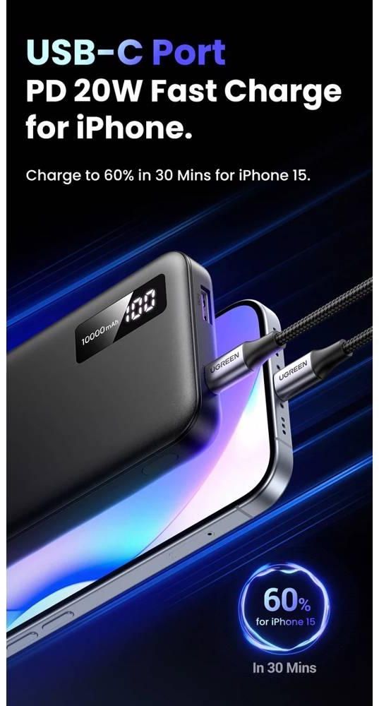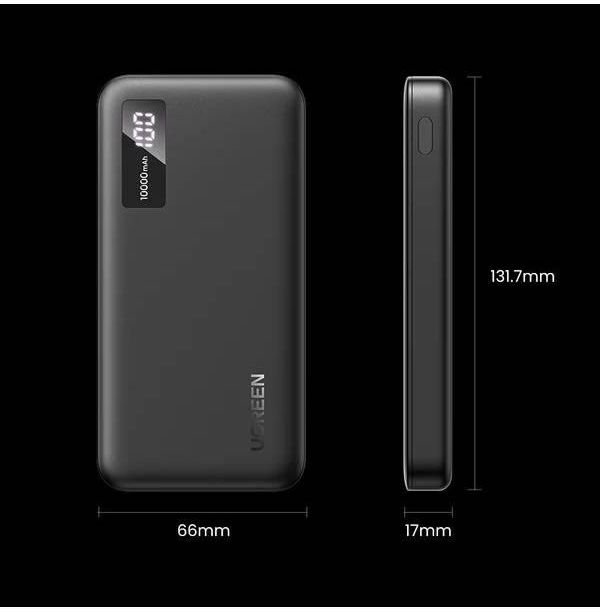 პორტატული დამტენი UGREEN PB311 (25742), 10000mAh 20W, Type-C, USB, Two-way Power Bank, Black