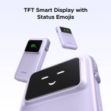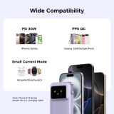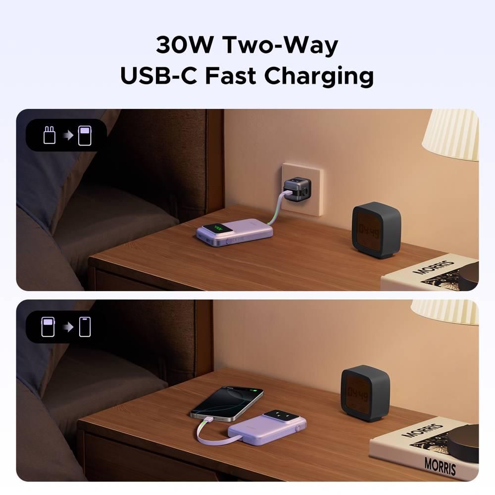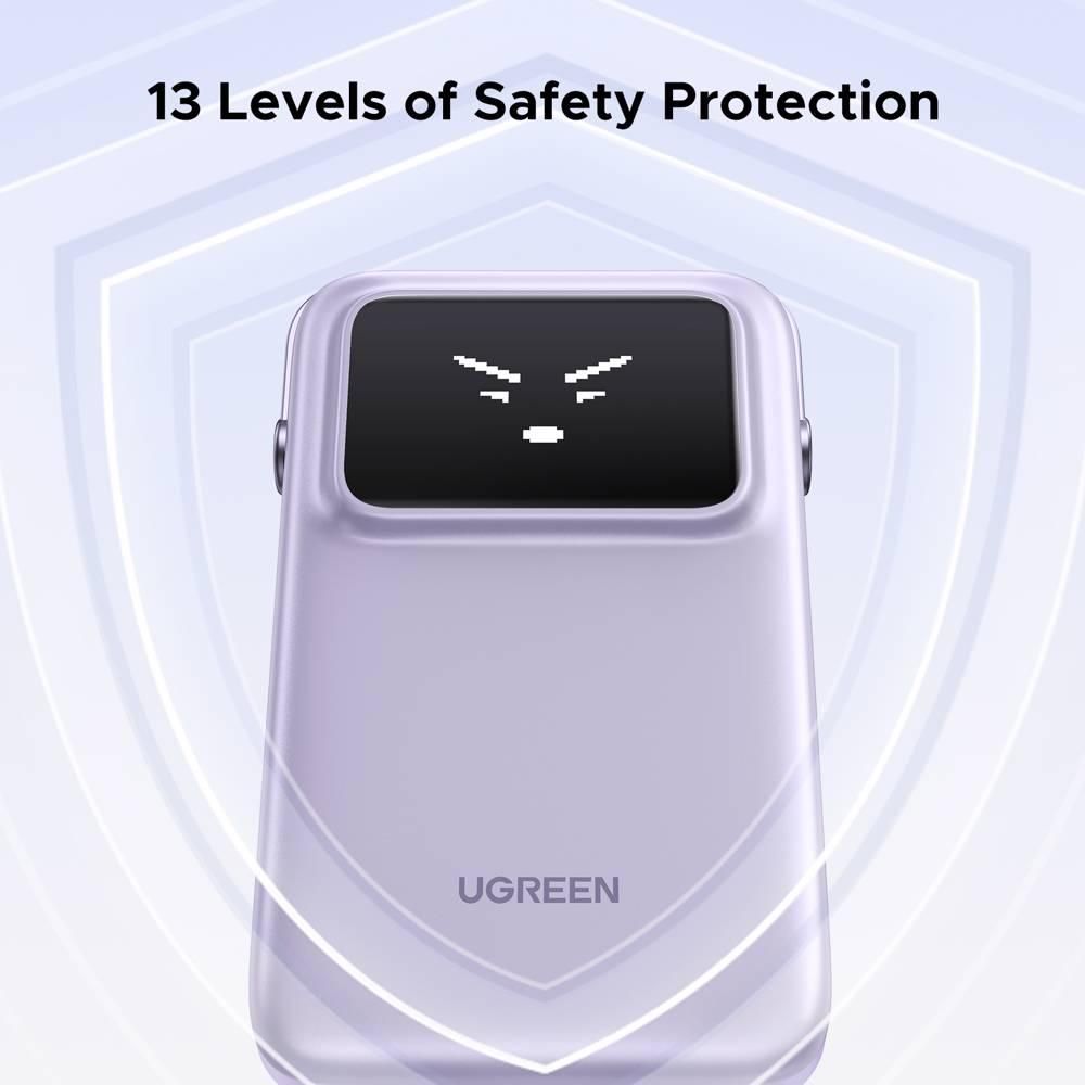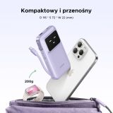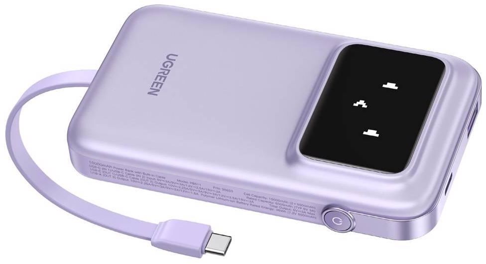 პორტატული დამტენი, UGREEN PB511 (35604B) Uno, 10000mAh 30 W, USB, Type-C, ჩაშენებული კაბელით, იასამნისფერი.