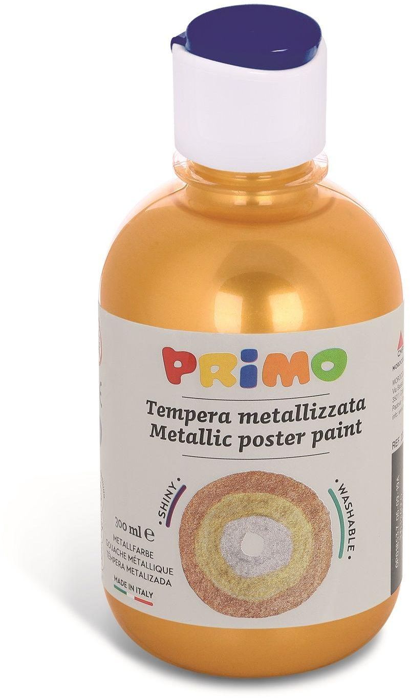 PRIMO მეტალიკი პოსტერ საღებავი არის დამწყებთათვის მეგობრული, მზად-მზა პოსტერ საღებავი, მოთავსებული 300მლ ბოთლში, რომელსაც აქვს მოსახერხებელი ნაკადის კონტროლის თავსახური. ხელმისაწვდომია მეტალიკ ფერების სპექტრში, ეს საღებავი იდეალურია უნიკალური, მბზინავი ეფექტის დამატებისთვის ნებისმიერი ხელოვნების ნამუშევარზე. ის საშუალებას გაწვდოს ოპაკური საფარი, და როდესაც გაშრება, ტონები რჩება ნათელი და მბზინავი მშვენიერი მეტალიკის ფინიშით. ფერები ადვილად შეიძლება შერეულიყო სხვადასხვა მბზინავი ჩრდილების მისაღებად. ეს მრავალმხრივი საღებავი შეიძლება გამოყენებულ იქნას სხვადასხვა ტიპის ზედაპირებზე, როგორიცაა ქაღალდი, ხე, ტექსტილი, მინა, ტერაკოტა, მეტალი და პლასტიკა. ლაქები უნდა მოიხსნას მოცემული ინსტრუქციის მიხედვით. გახსოვდეთ, რომ უსაფრთხოების ქვედა თავსახური უნდა მოიხსნას გამოყენების წინ.