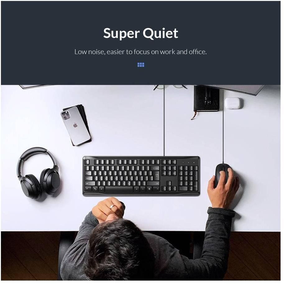 სადენიანი კლავიატურა 1.5 მ და მაუსის კომბო, UGREEN MK003 (15097) MU007 (90789), ქართული QWERTY, USB, შავი.